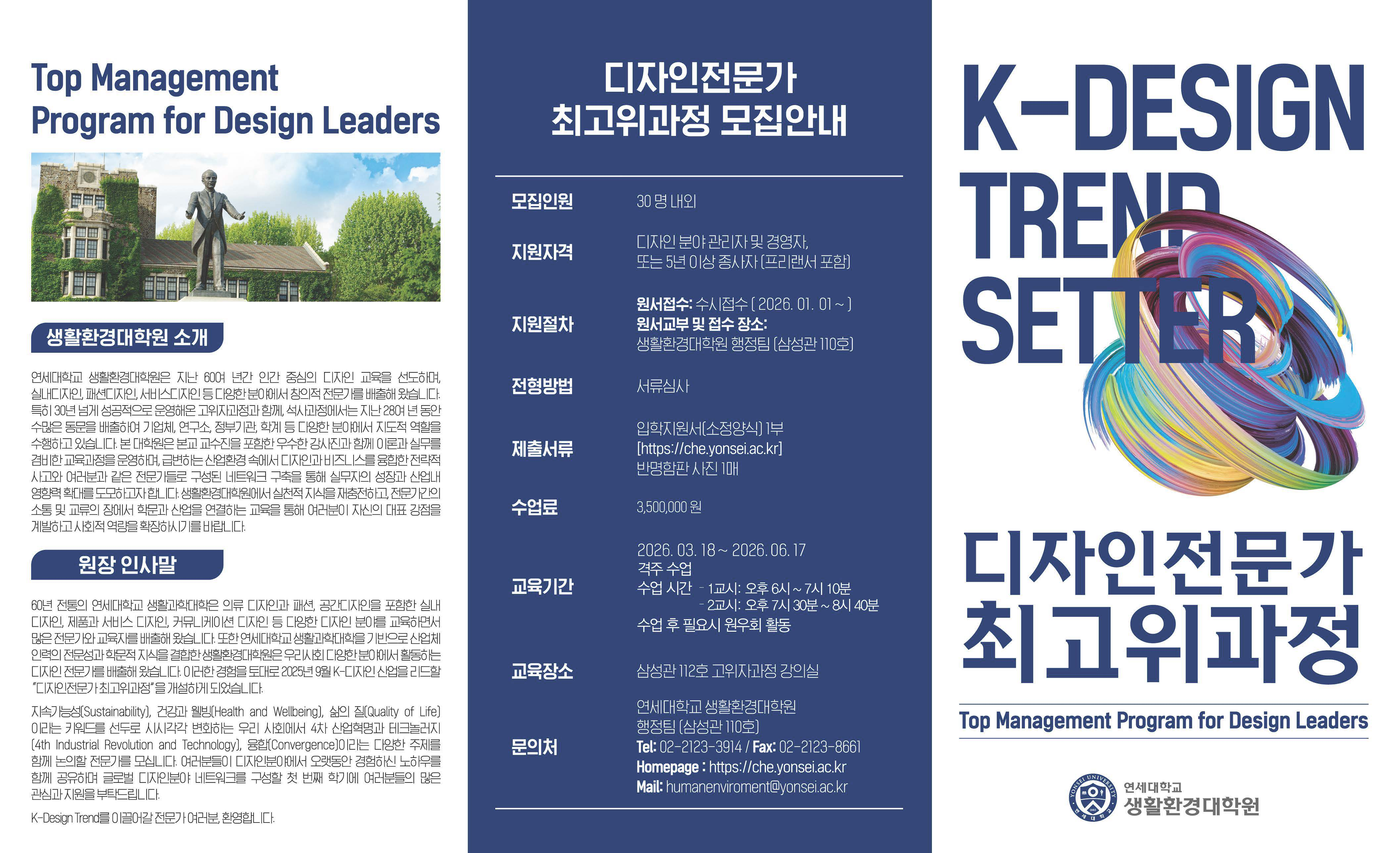 -교육 장소: 연세대학교 신촌캠퍼스 삼성관 112호 고위자과정 강의실