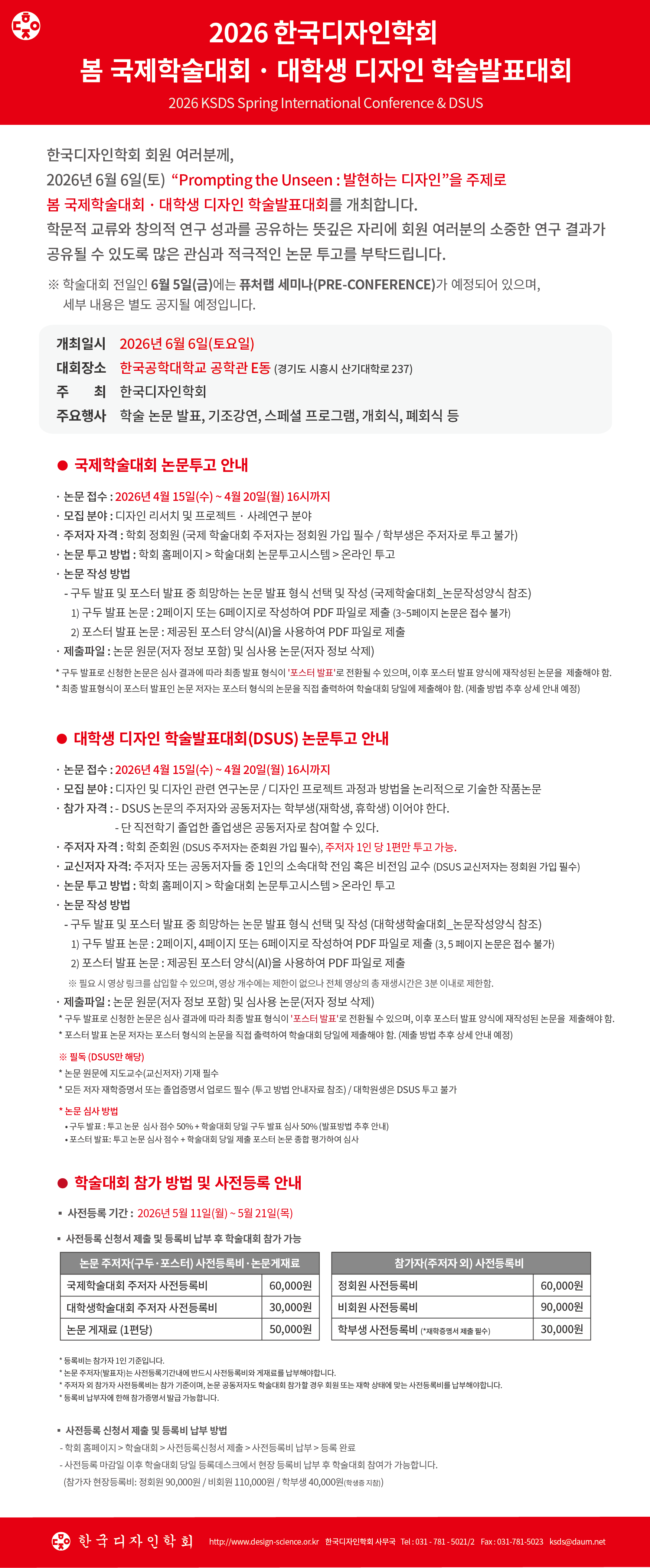2026 봄 국제학술대회 · 대학생 디자인 학술발표대회 개최 안내