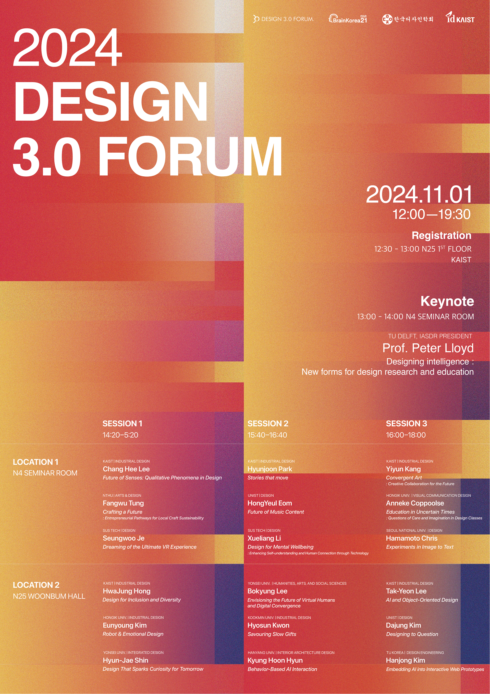 안녕하세요, KAIST 산업디자인학과(ID KAIST)에서 11월 1일 대전에서 열리는 2024 디자인 3.0 포럼에 한국디자인학회 회원 여러분을 초대합니다!